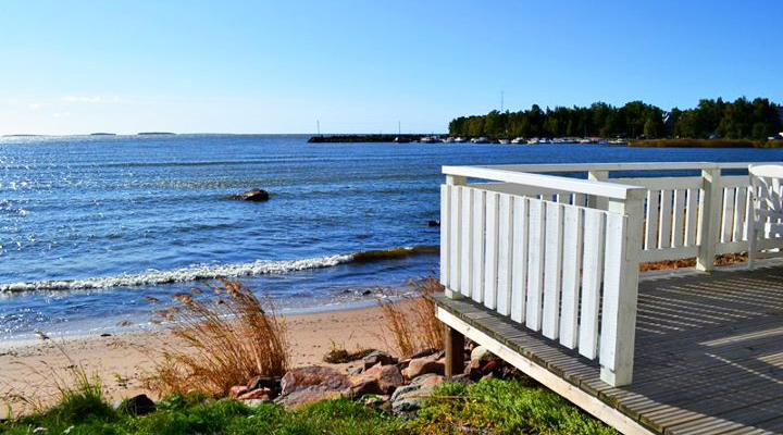 Emme suosittele huvilaa liikuntaesteisille, sillä terassilta johtavat portaat sekä huvilaan että rantaan.