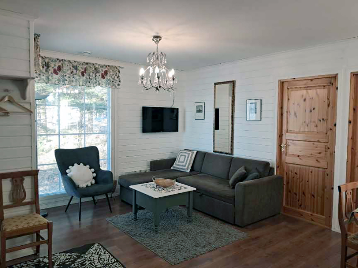 Molemmissa makuuhuoneissa on kaksi 80 senttimetriä leveää vuodetta, olohuoneessa on levitettävä vuodesohva. Keittiöstä löytyy tarvikkeet kuudelle henkilölle.